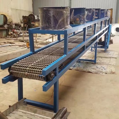传送带输送机,降温输送机:给高温红热锻造件进行降温的输送机传送带,链条片输送机的优点:降温效果好,透气性好,便于散热,耐高温不变形,根据输送产品的重量来灵活的设计链条的节距,支轴的直径。可以配置不同规格大小的风机,数量。链条片输送机采用不锈钢材质的输送带链条片输送带,耐高温不变形。可以配套风机,来个锻造件降温。