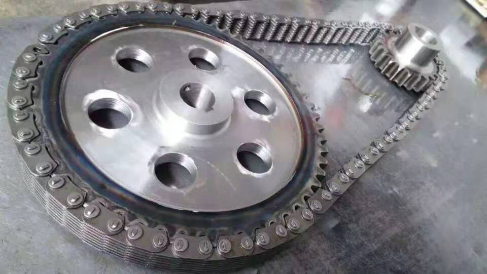 无声链 齿形链轮 无声链:也叫齿形链条,采用无声齿形链轮带动运转传动。宁津县荣达机械制造有限责任公司定做各种无声齿形链条,无声齿形链轮。我们根据客户自己的情况,客户选型成功,我们根据客户的数据非标定做各种齿形链条和无声齿形链轮。齿形链条节距4.7625,6.35 9.525 12.7 15.875 19.05 25.4 31.75 38.1毫米的链条都能做,无声齿形链轮根据客户的齿数和外径,内孔,键槽定做。无声齿形链条的独特优点:高速,无噪音,高承载传动能力,转矩大等等优点,逐渐取代精密滚子链条和同步带。